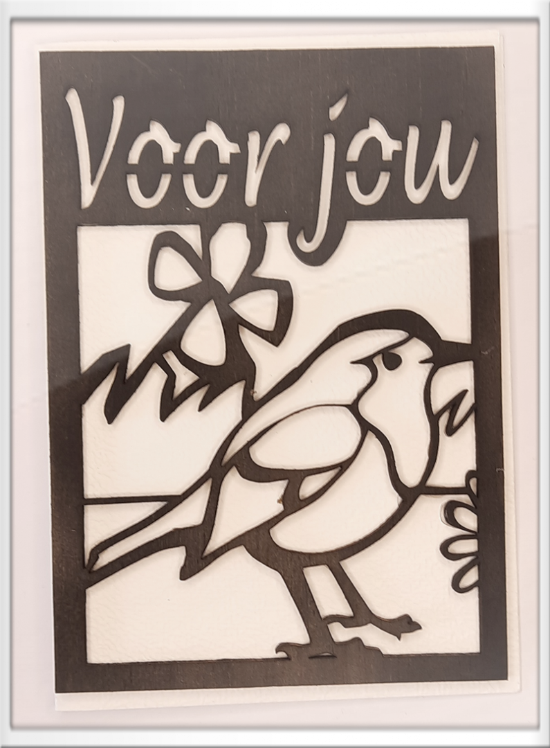 Vermeld bij de order: illustratie in zwart of houtkleur en wit of ivoorkleur papier.